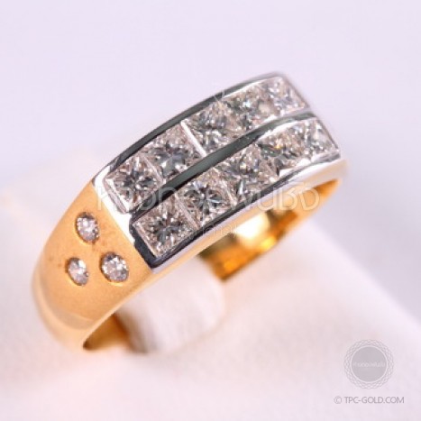 แหวนเพชรแถว เพชรทรงสี่เหลี่ยม (Princess cut)