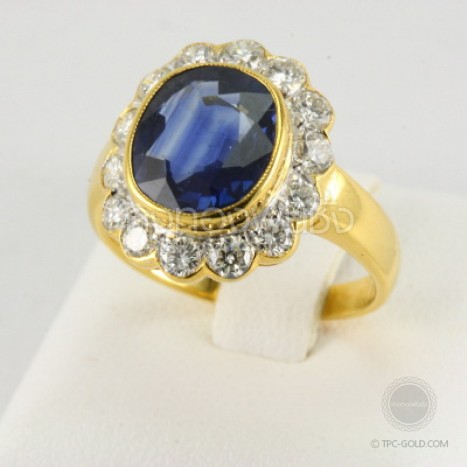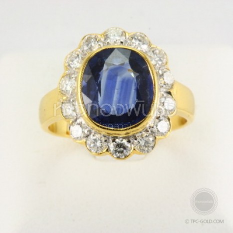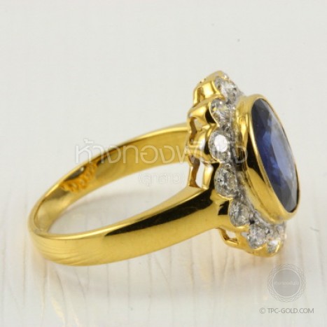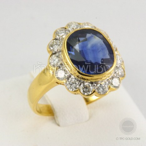 ไพลินขนาด 4 กะรัต ล้อมเพชร 14 เม็ด ขนาด 5 ตัง
