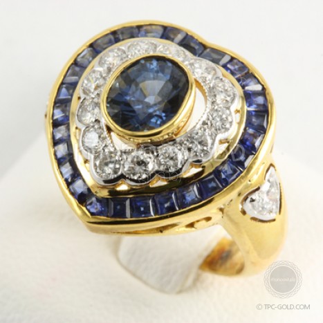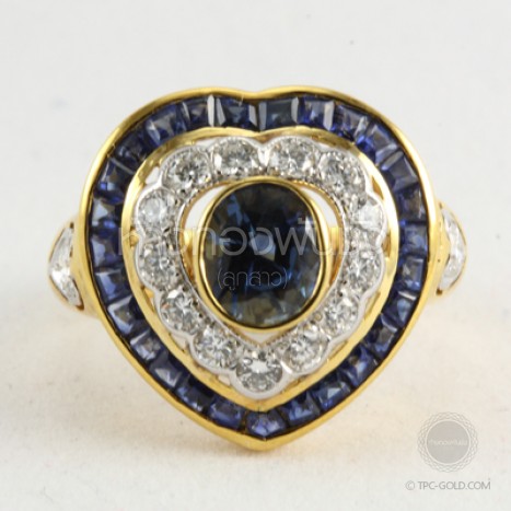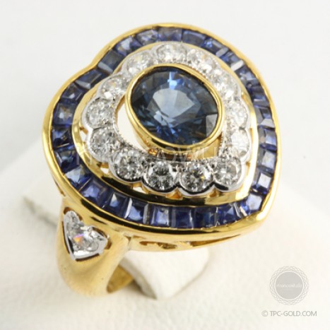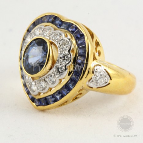 แหวนไพลินล้อมเพชรทรงหัวใจ