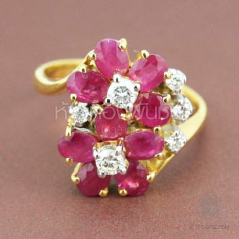 DR211 - แหวนทับทิมทรงดอกไม้ข้างเพชร