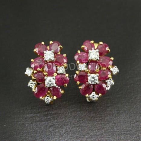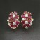 DR214 - ต่างหูทับทิมทรงดอกไม้ข้างเพชร