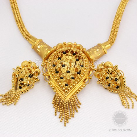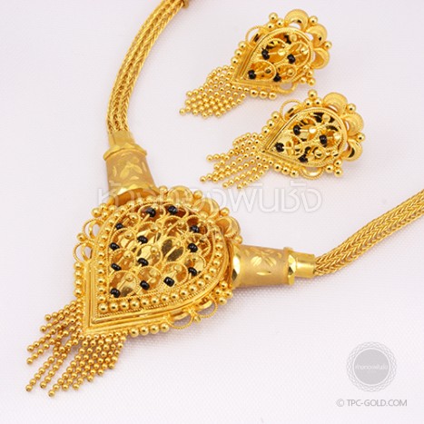 SET040 เครื่องประดับเข้าชุด : สร้อยข้อมือ และสร้อยคอดอกไม้บาน ทองคำ 99.99% ติดต่อสอบถาม -