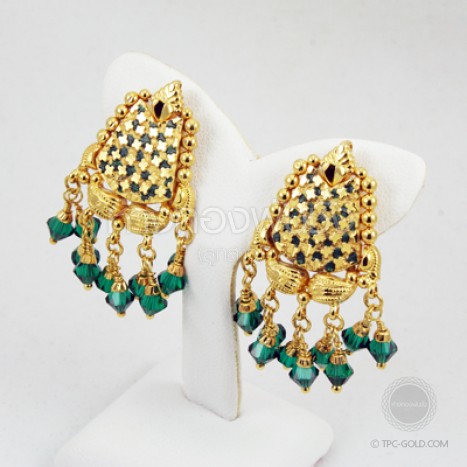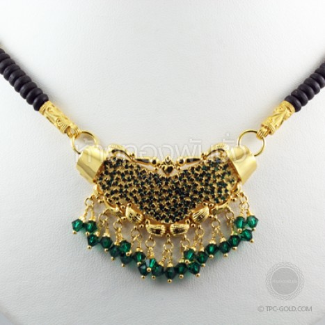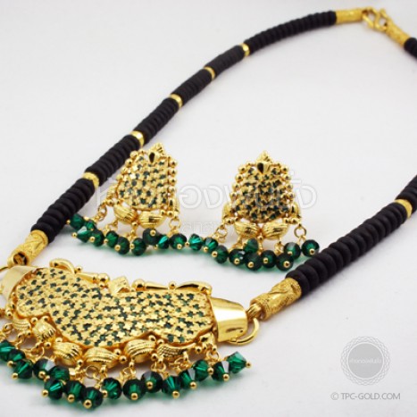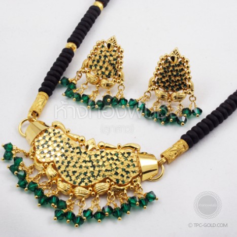 เครื่องประดับชุดทองอินเดีย: สร้อยคอ + ต่างหู ห้อยพลอยสีเขียว