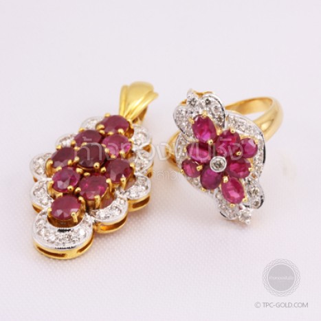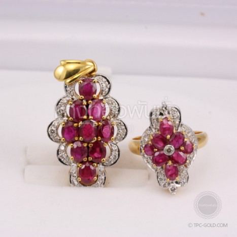 SET021 ชุดแหวนและต่างหู ทับทิมข้างเพชรทรงดอกไม้ ฿ 75,000 -