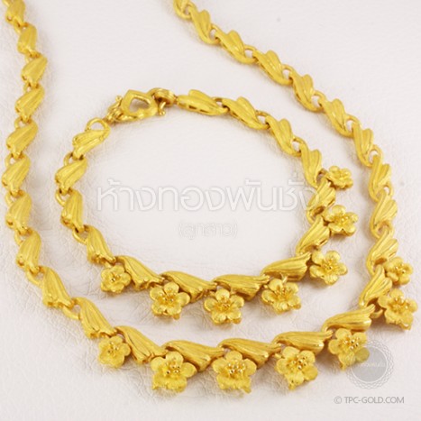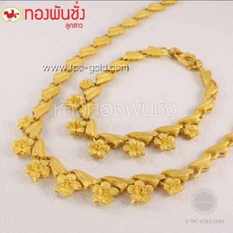 SET040 เครื่องประดับเข้าชุด : สร้อยข้อมือ และสร้อยคอดอกไม้บาน ทองคำ 99.99% ติดต่อสอบถาม -
