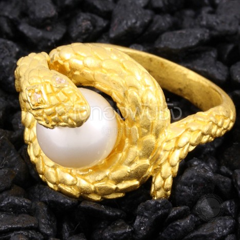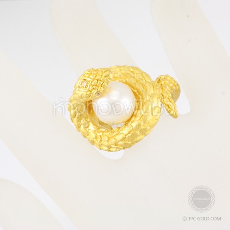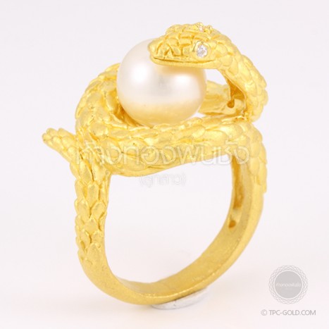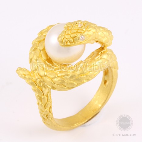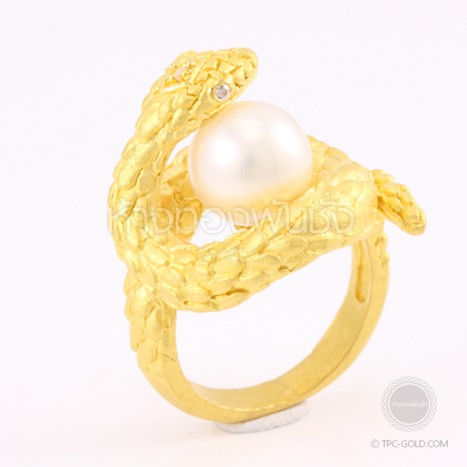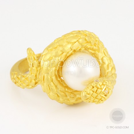 แหวนตัวงูโอบมุก South Sea ทองคำ 96.5% งานดีไซน์